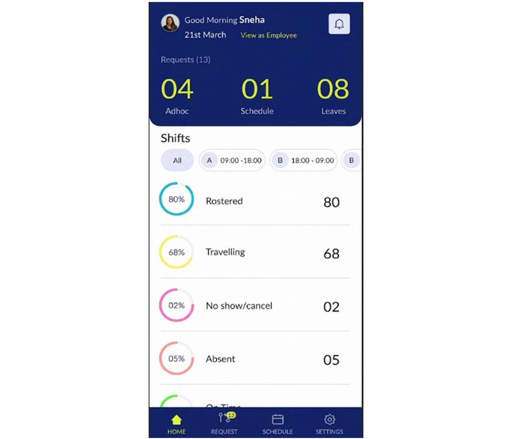 Employees loved the mobile app to schedule themselves and track their cabs, which reduced travel time and improved satisfaction.